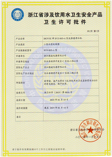 • 德恩特凈水機(jī)已獲得國(guó)家衛(wèi)生許可批件