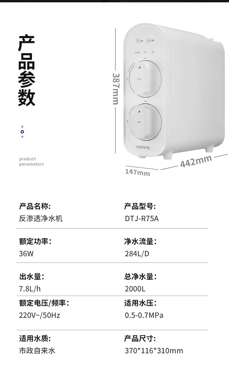 產品中心 > 凈水機系列> (新品凈水機)德恩特DTJ-R75A(反滲透)