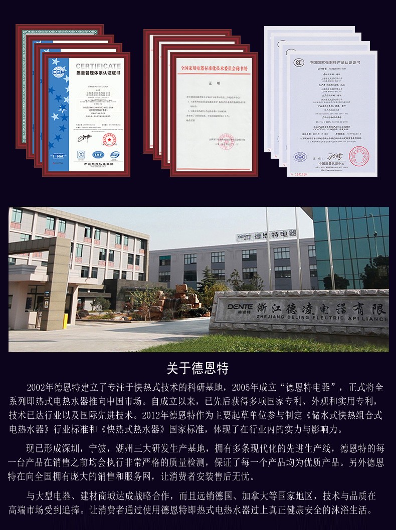 德恩特品牌旗下涵蓋即熱式電熱水器,速熱式電熱水器,快熱式電熱水器品牌和凈水機等