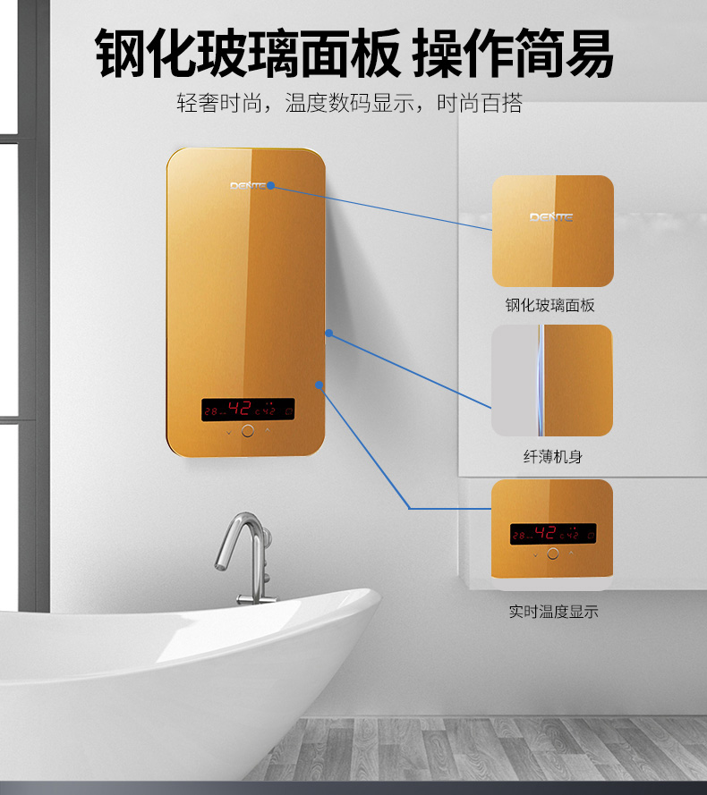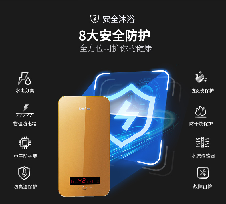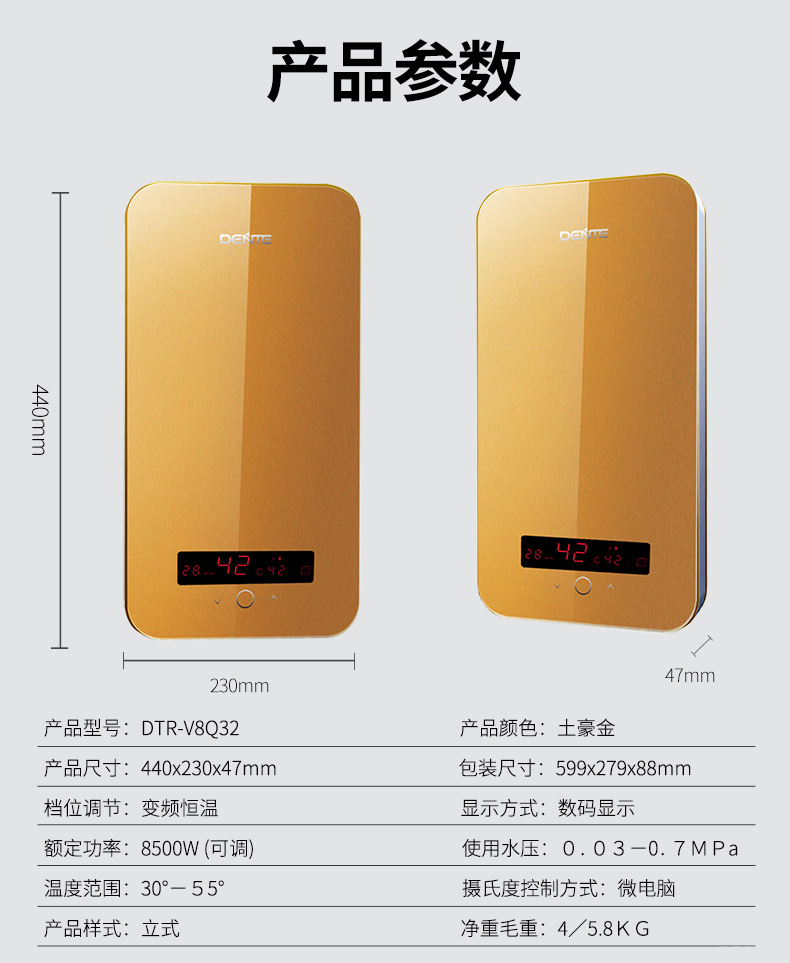 德恩特DTR-V8Q32 即熱式電熱水器小型家用恒溫洗澡機